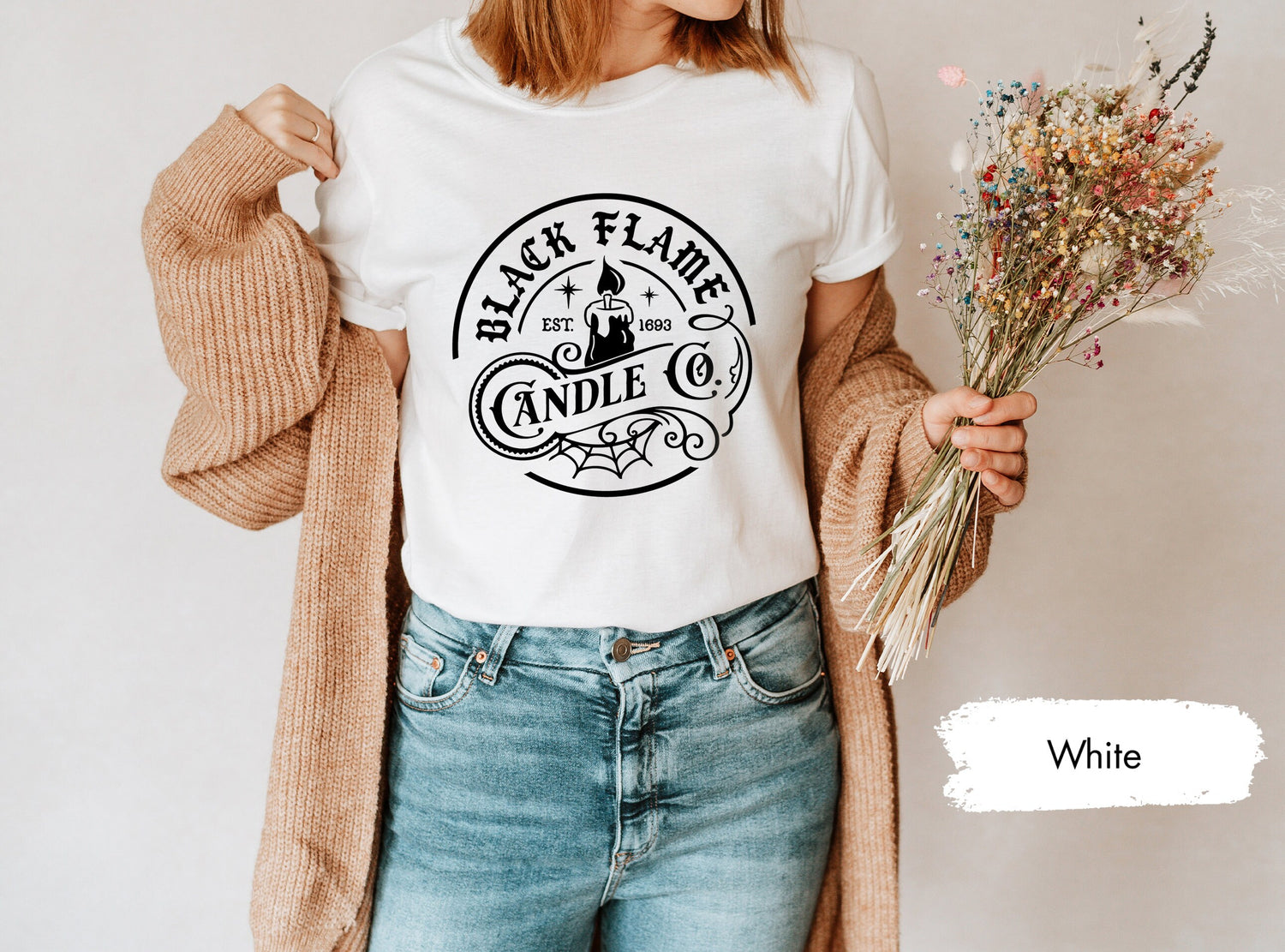 Order your "Black Flame Candle Company" shirt today and let your Halloween style shine!