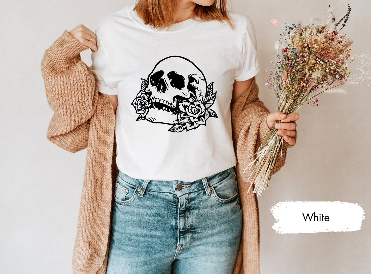 Boho Floral Skull TShirt, Boho Shirt, FLower Skull Shirt, Gobblincore Boho Shirt, Botanical Skeleton Shirt, Bloom Skull Shirt, Skull T-Shirt