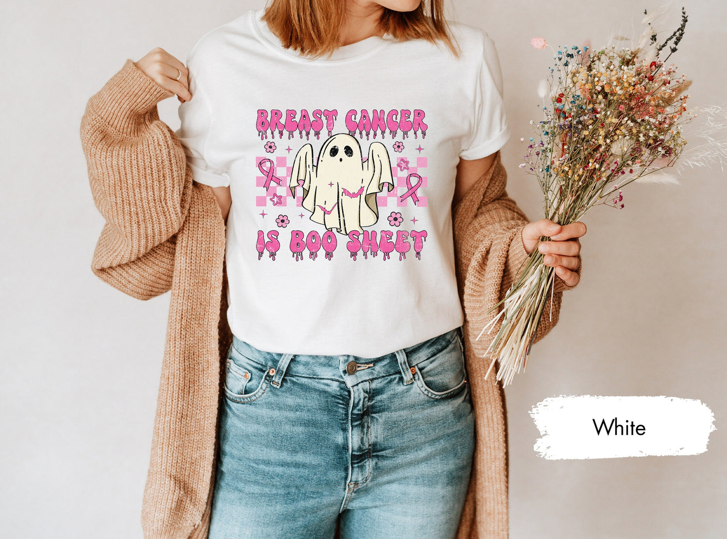 Show your strength and solidarity with our "Breast Cancer is Boo Sheet" shirts! These powerful designs are perfect for raising awareness, supporting survivors, and honoring those who have been impacted by breast cancer.