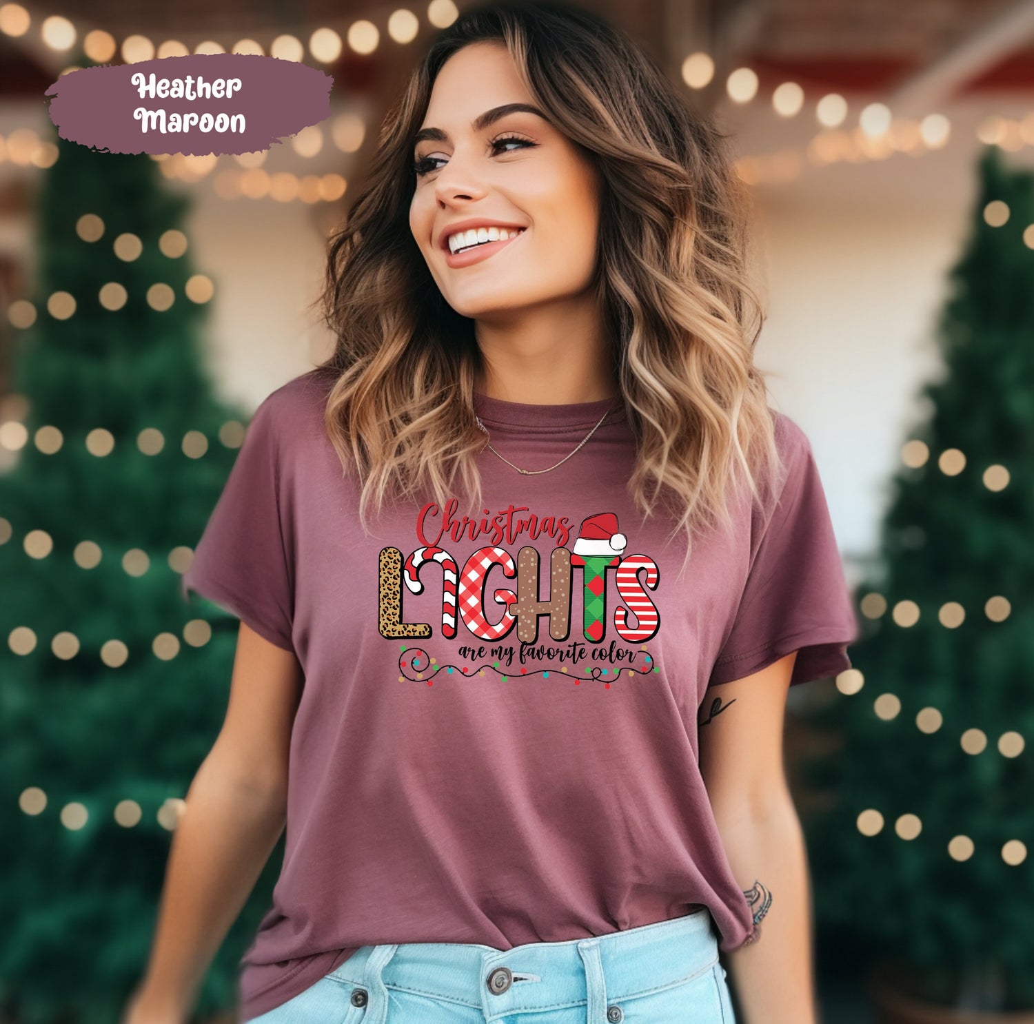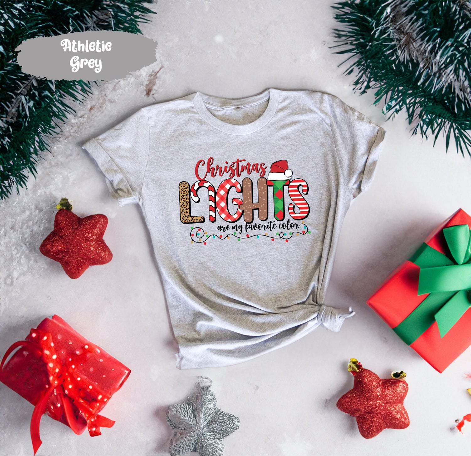Christmas Lights Are My Favorite Color Shirt With Buffalo Plaid Leopard Santa Hat, Cute Christmas Shirt, Christmas T Shirt, Graphic Tshirt