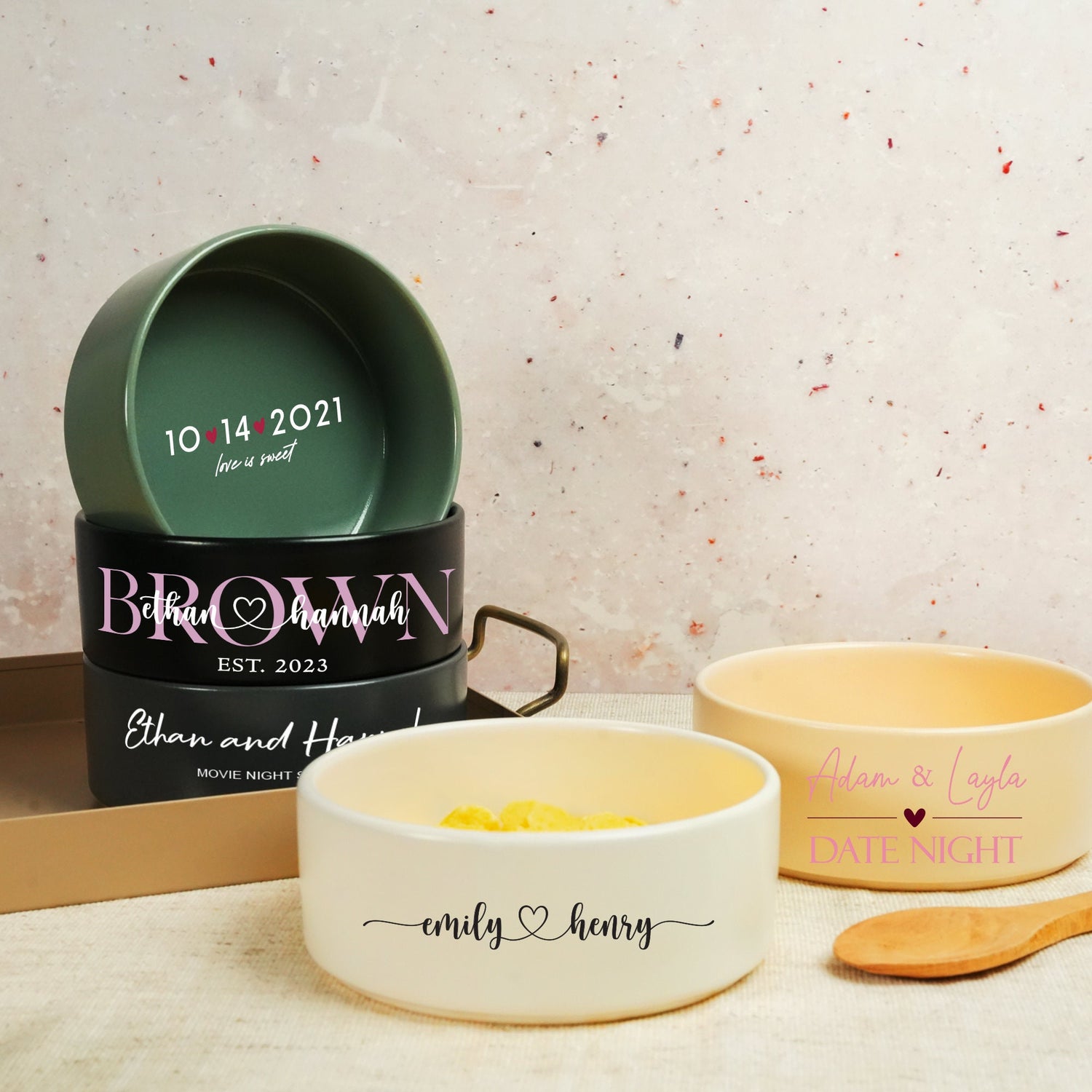 Custom Ceramic Snack Bowl for Couples, Personalized Date Night Bowl, Ice Cream Bowl, Modern Ceramic Serving Bowls, Kitchen Gifts for Couple