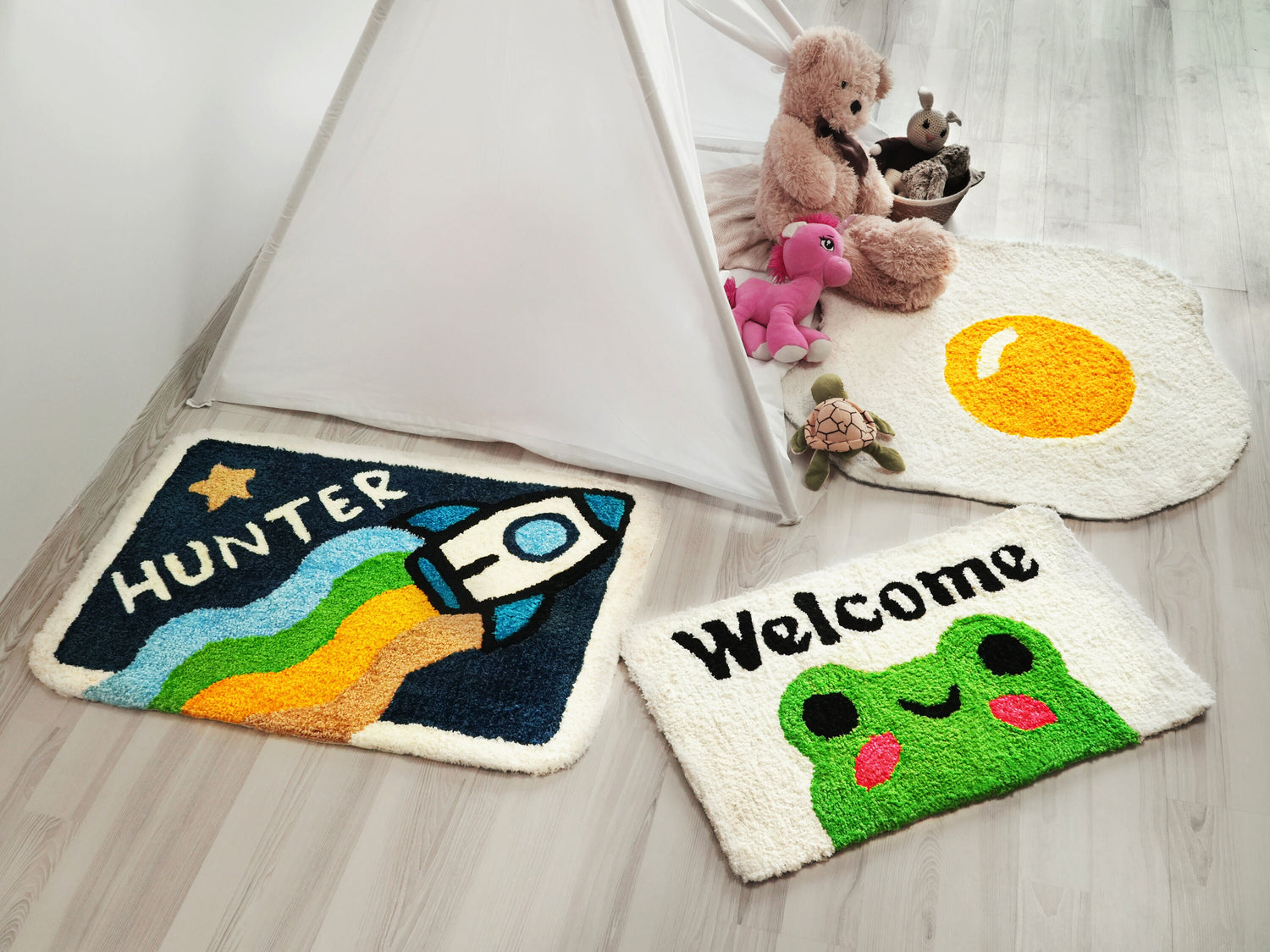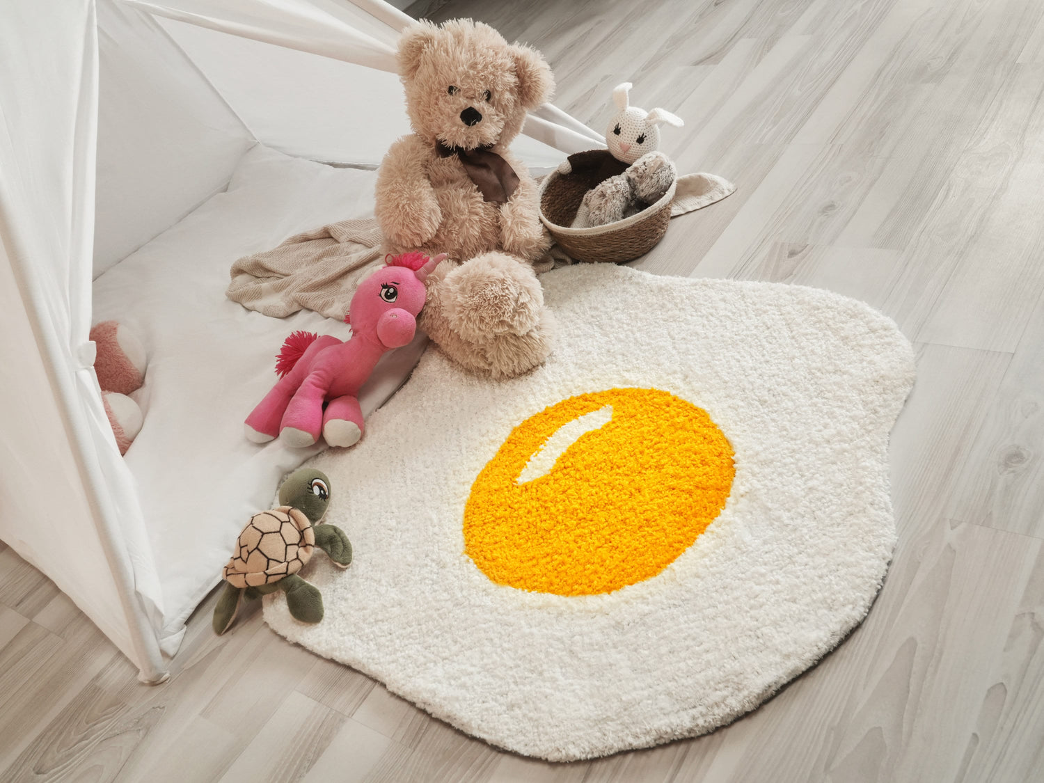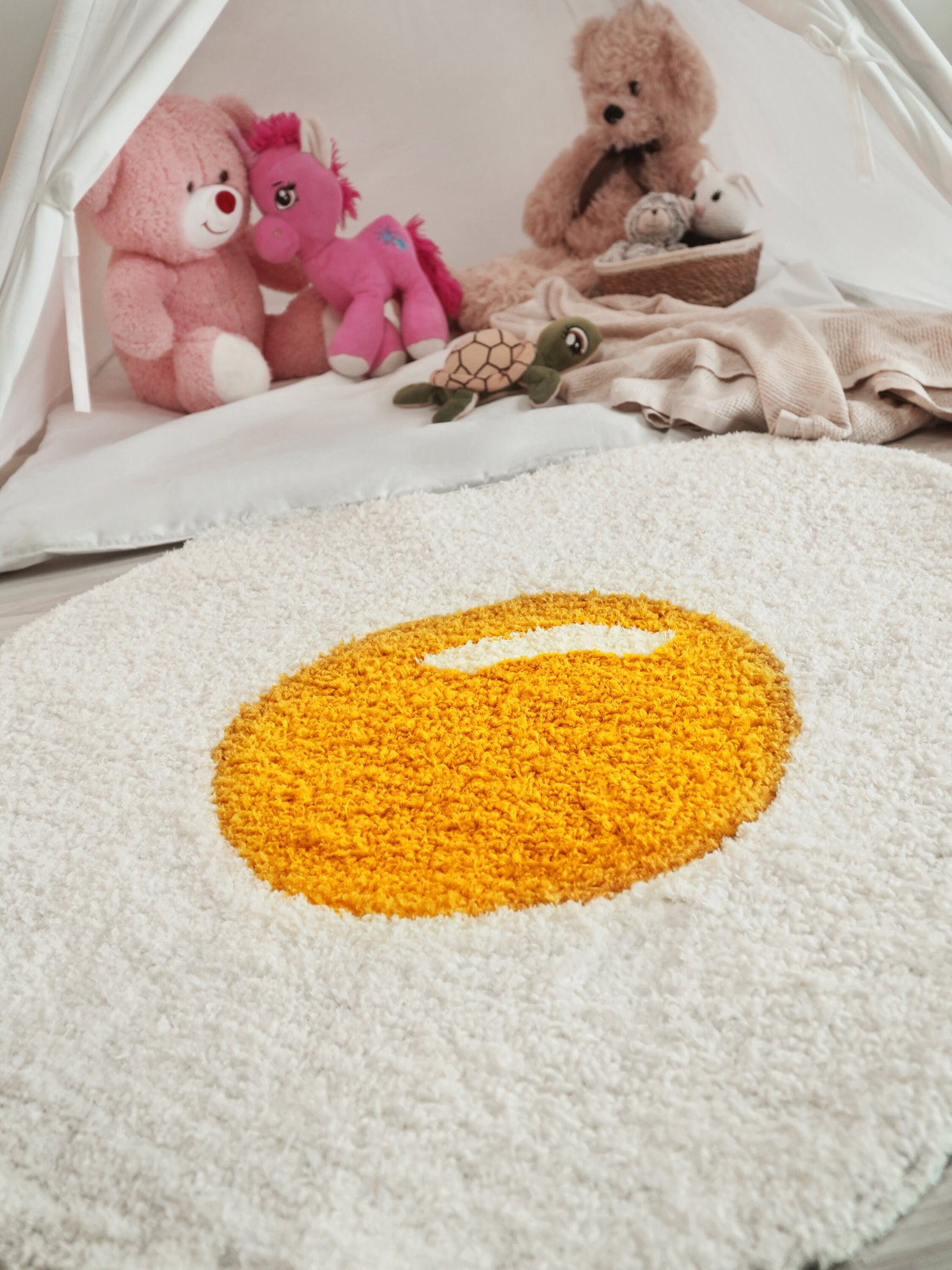 Custom Handmade Tufted Rug, Personalized Kitchen Room Carpet, Dining Carpet, Fried Egg Rug, Housewarming Gift, Kids Birthday Gift