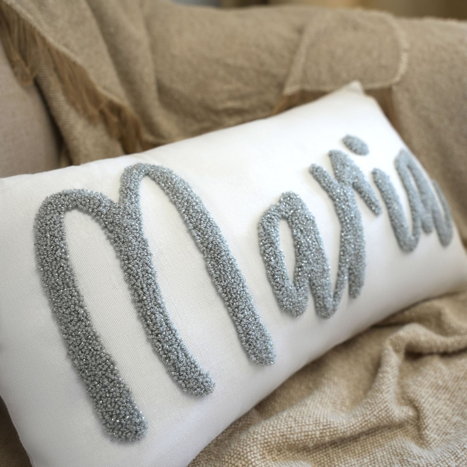 Custom Name Punch Needle Glitter Gold Embroidered Pillow, Personalized Kid Room Decor, Nursery Decor, Birthday Gift, Christmas Gift Idea