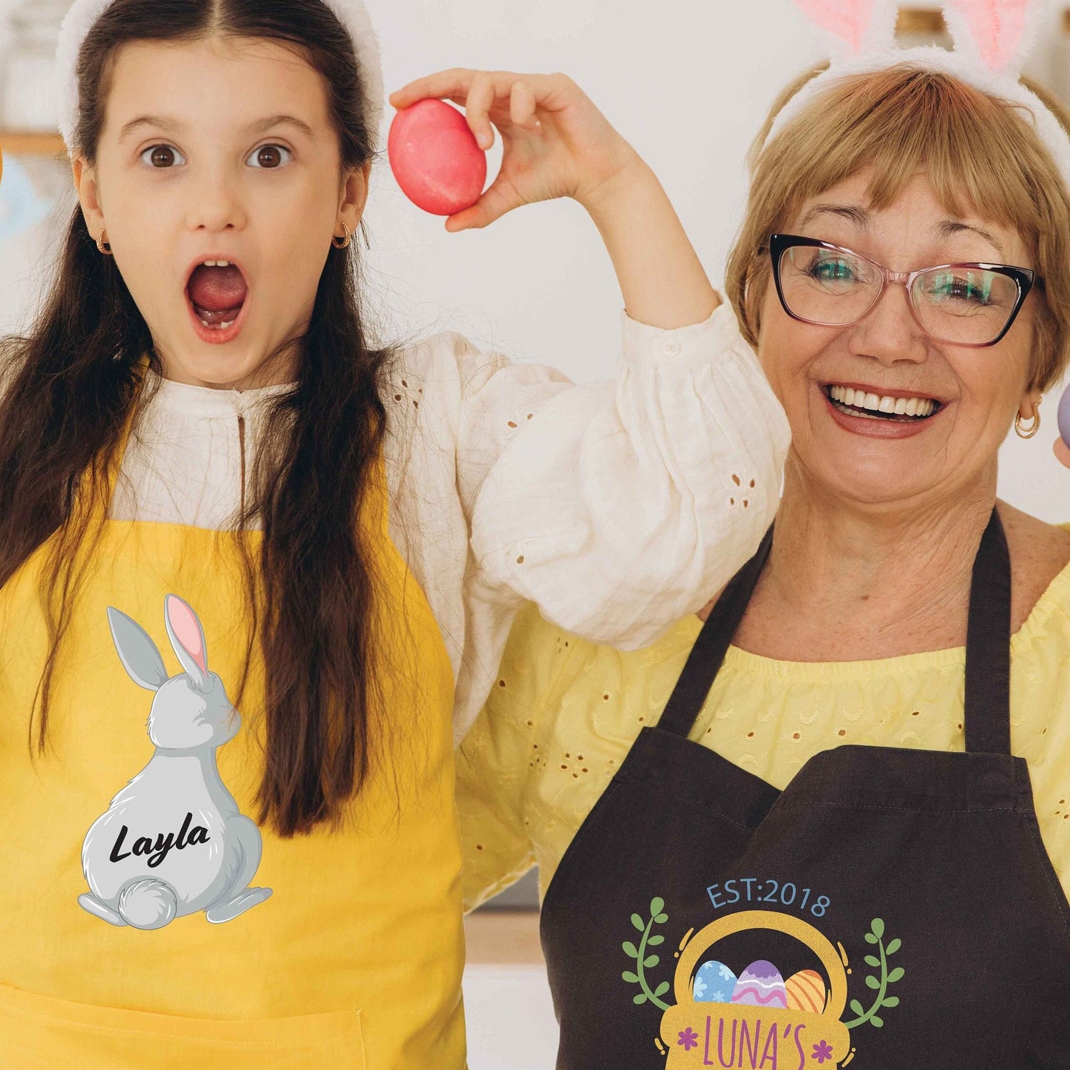 Easter Grandma Grandkid Cooking Apron, Baking Apron, Personalized Apron, Custom Apron, Easter Kitchen Decor, Baking Apron, Easter Apron