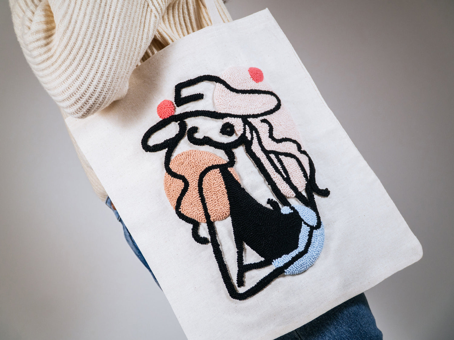 Each bag is meticulously crafted with the traditional punch needle technique, creating a textured, one-of-a-kind design.