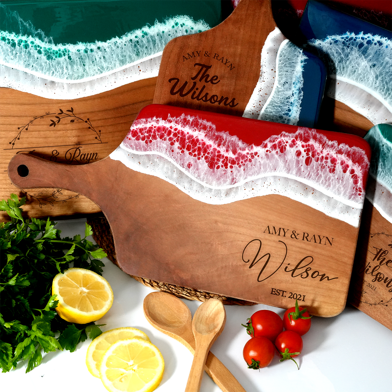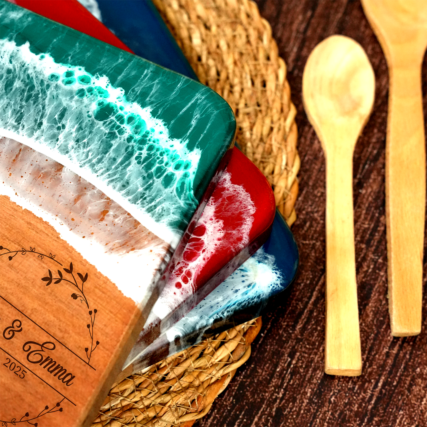 Searching for a gift that's both beautiful and practical? Look no further than our stunning collection of personalized resin and walnut serving boards. These handcrafted masterpieces are more than just kitchenware—they're conversation starters and works of art that will elevate any occasion.