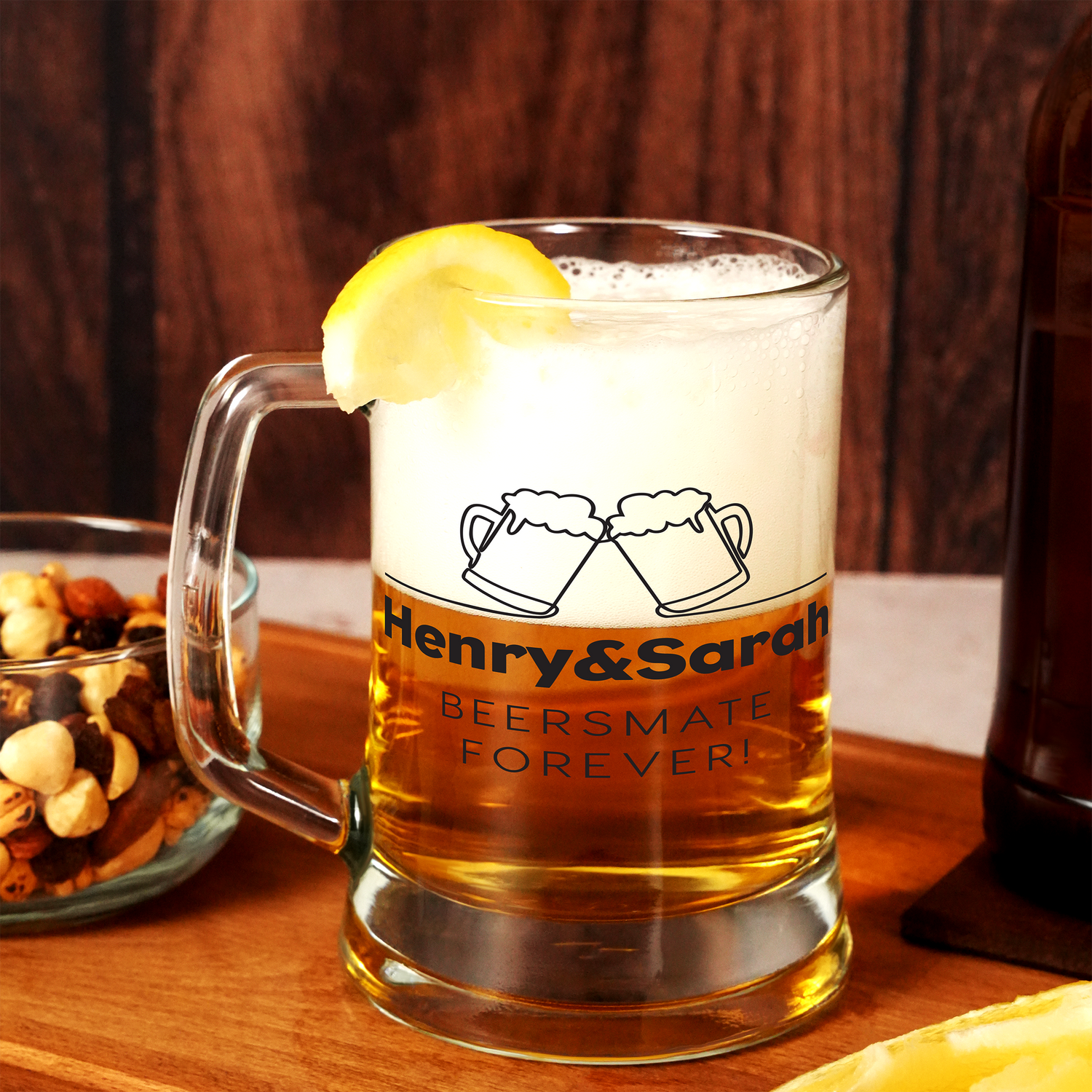 Searching for a distinctive Barware Gift for Men? Our Personalized Beer Mug offers a sophisticated touch, perfect for any occasion. Featuring the option for elegant Custom Monogram Engraved Glasses (using durable print technology for a high-quality finish), this isn't just a plain Beer Glass – it's a statement piece. It's the ideal Beer Gifts for Dad, a thoughtful Boyfriend Anniversary Gift, or a cherished item for any man who appreciates fine barware. Its classic design and sturdy feel make it perfect for enjoying a favorite brew, marking a special date, or adding a touch of personal style to his home bar. Add his initials, a special date, or a unique design, creating a truly custom piece tailored specifically for him.