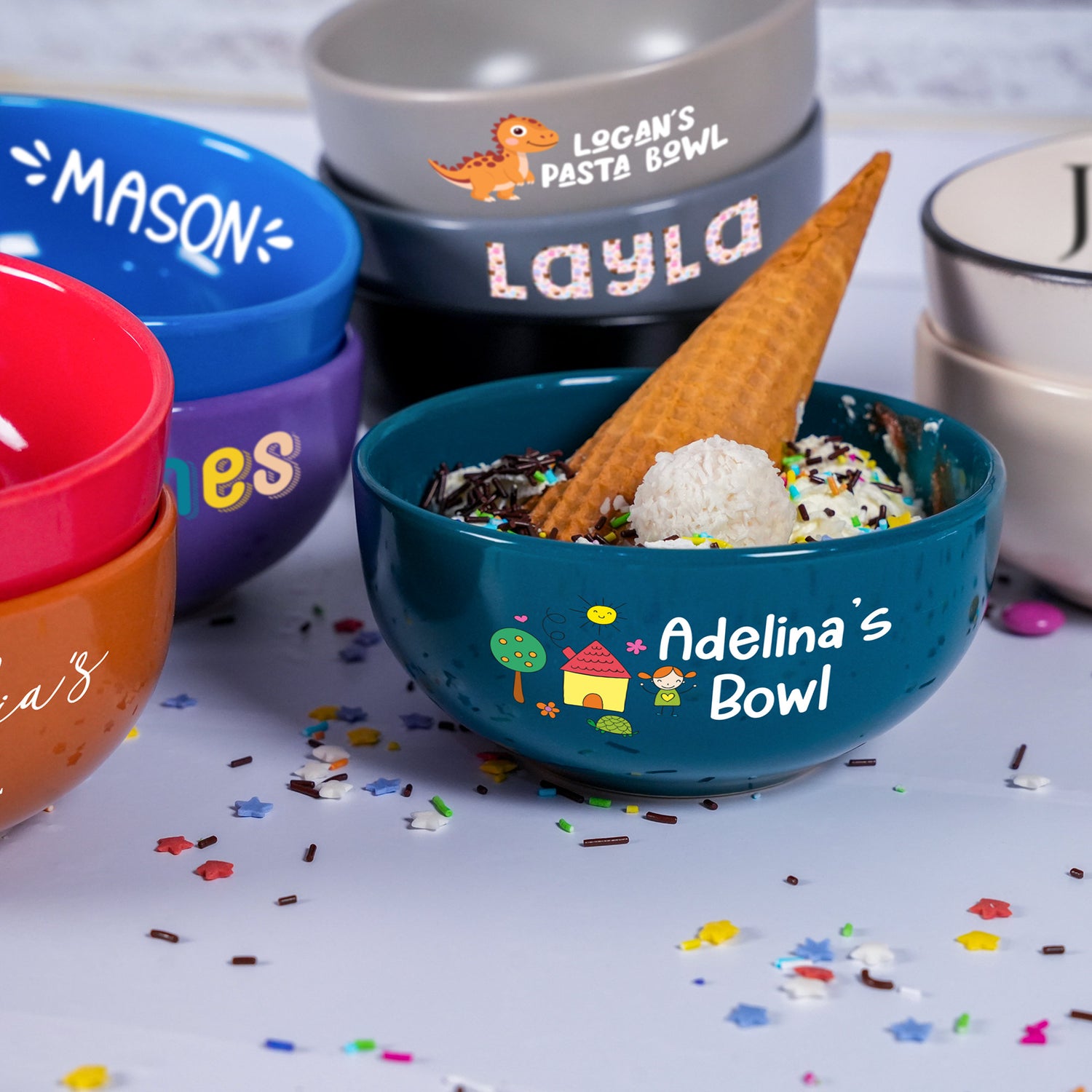 Personalized Ceramic Ice Cream Bowl, Custom Name Cereal Bowl, Kids Christmas Gift, Birthday Gifts, Baby Feeding Bowl, Ceramic Bowls for Kids