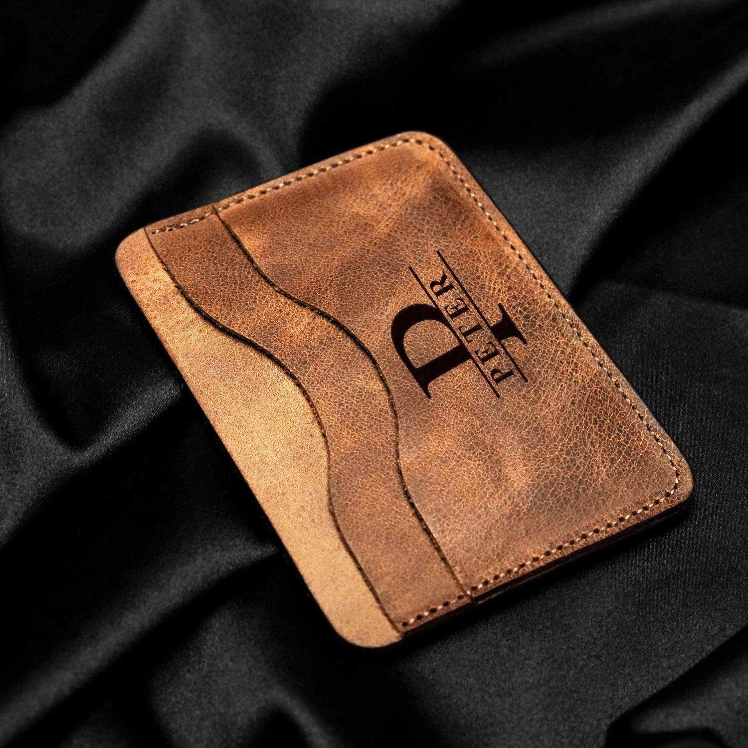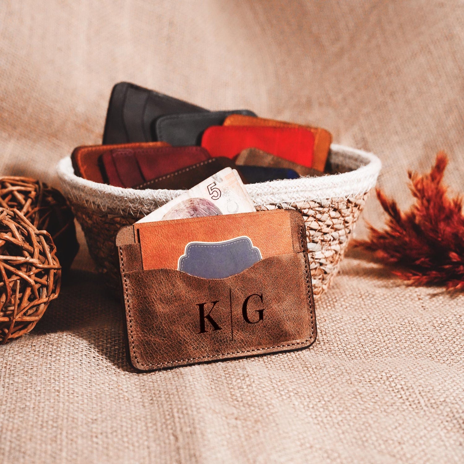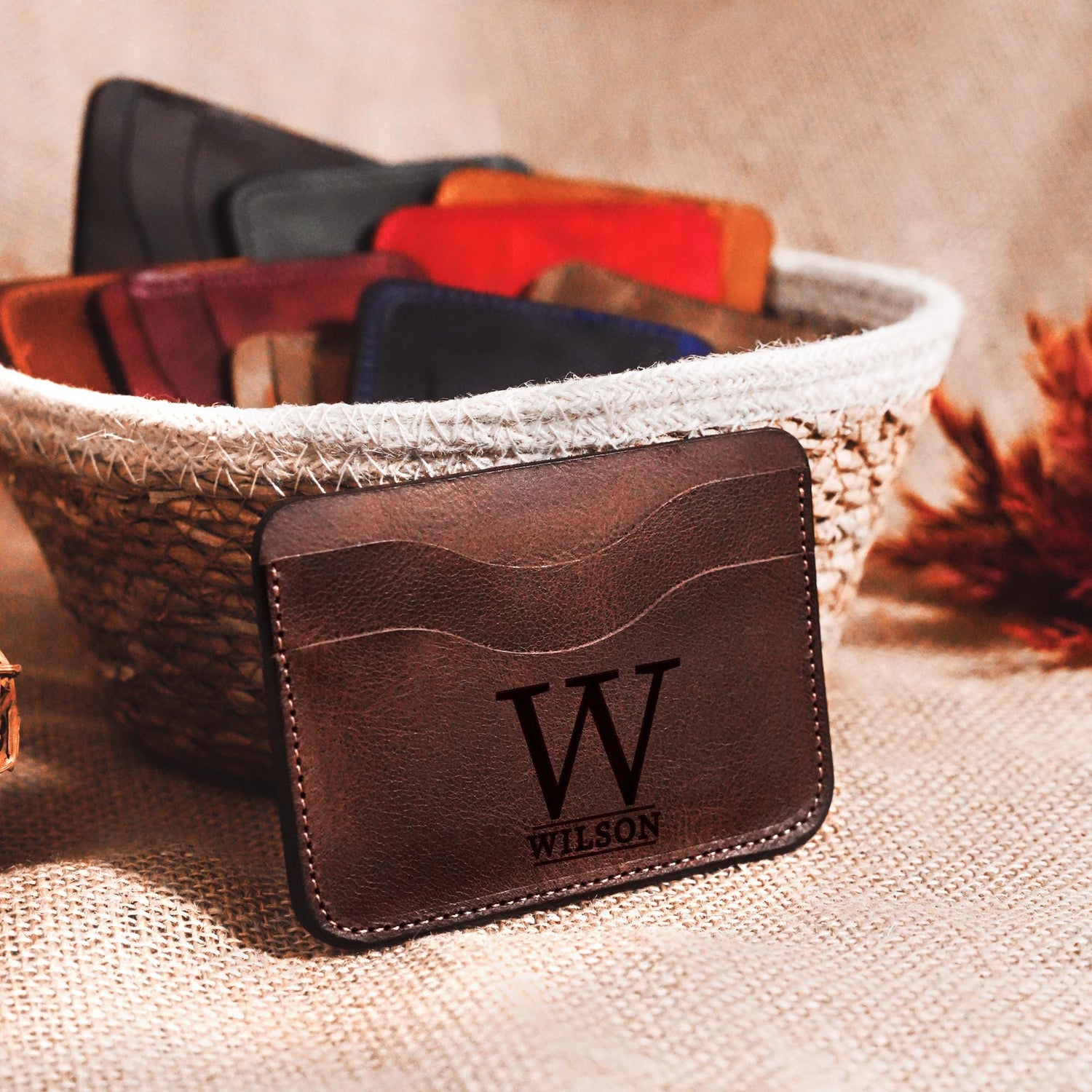 Personalized Minimalist Slim Credit Card Wallet, Leather Card Holder, Custom Wallet, Unisex Credit Card Sleeve, Gift Ideas for Him & Her