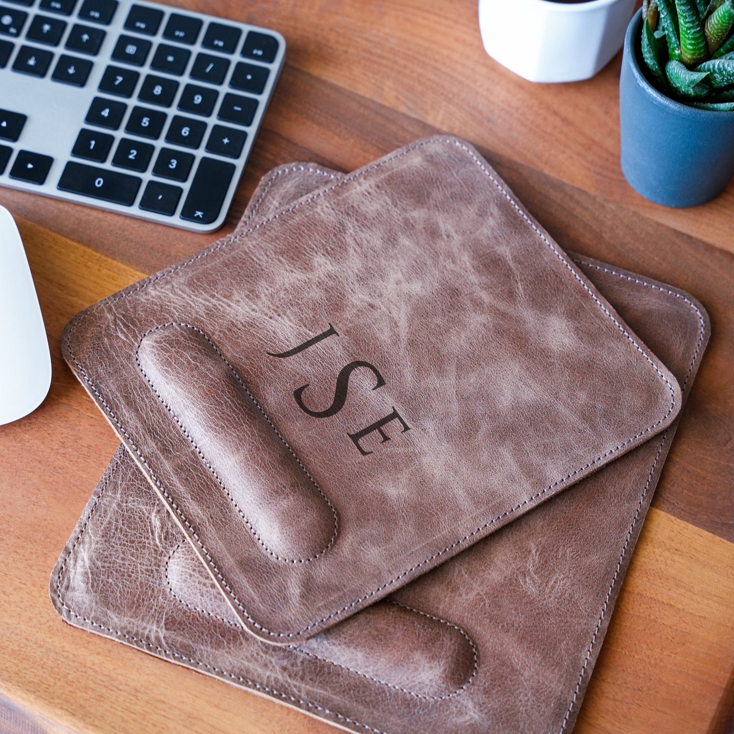 Engraved Leather Desk Set | Mouse Pad, Wrist Rest, Office Gifts