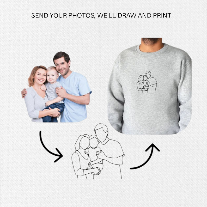 Personalized Potrait from Photo Hoodie, Custom Hoodie, Anniversary Gift, Mom Gifts, Family Photo Sweatshirt, Gift for Dad, Family Photo