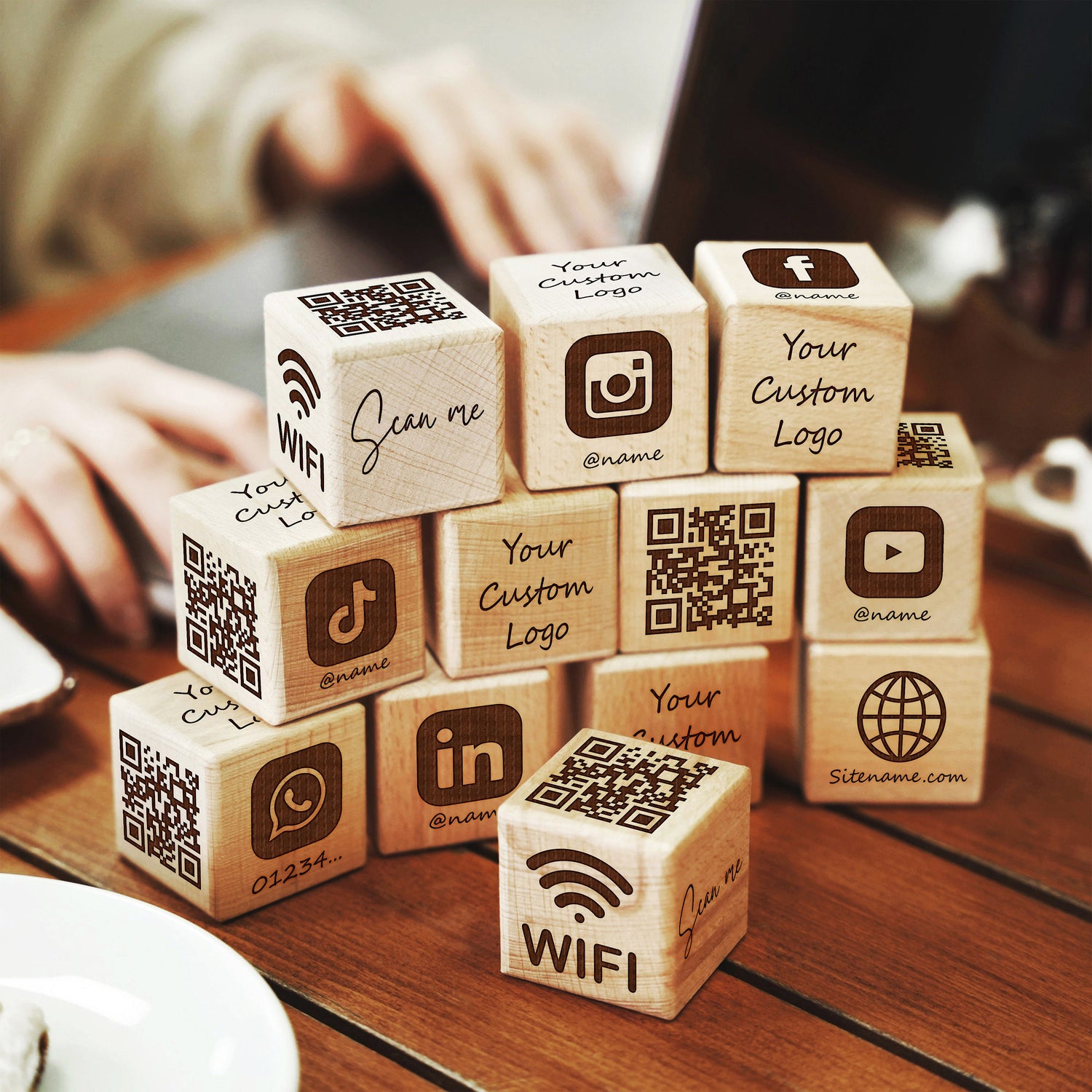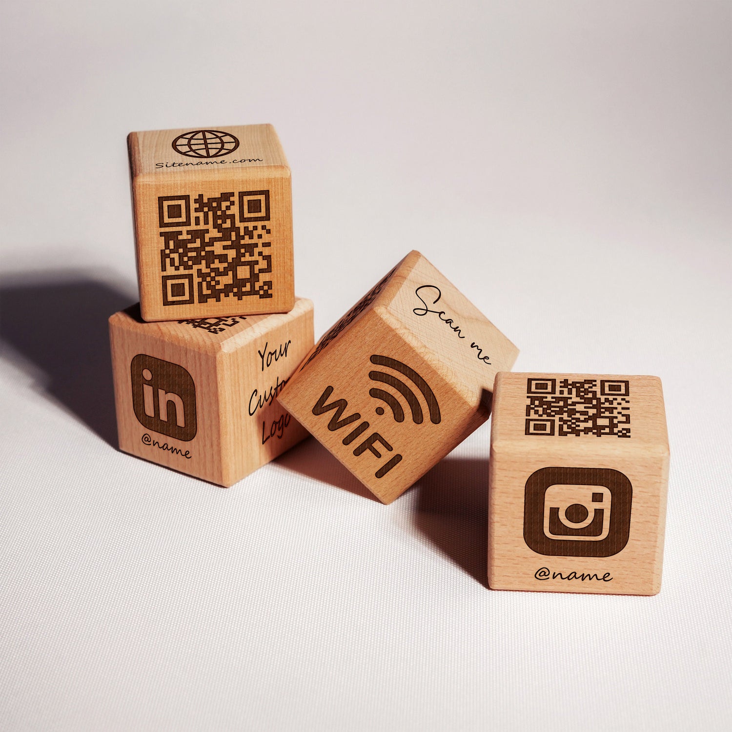 Enhance your space with these custom wooden QR cubes that combine style and functionality.